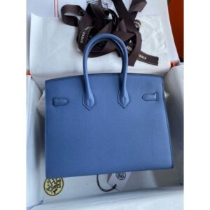 Hermes Birkin 25 Sellier Handmade Bag in Blue Brume Epsom Calfskin