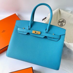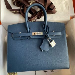 Hermes Birkin 25 Sellier Handmade Bag in Blue Glacier Epsom Calfskin