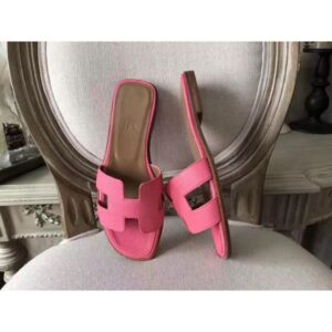 Hermes Oran Sandals In Rose Scheherazade Shiny Niloticus Crocodile