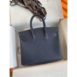 Hermes Birkin 25 Verso Retourne Handmade Bag in Blue Nuit Clemence Leather