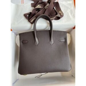 Hermes Birkin 25 Verso Retourne Handmade Bag in Ebene Clemence Leather
