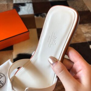 Hermes Oran Slide Sandals in Gold Swift Calfskin with Canvas