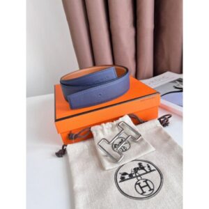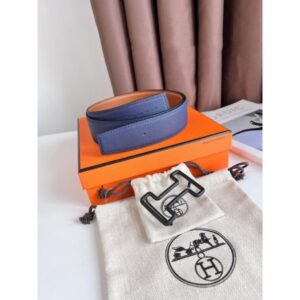 Hermes Tonight Reversible Belt 38MM in Blue and Gold Epsom Calfskin
