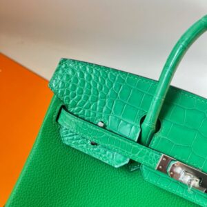Hermes Touch Birkin 25 Bag in Bambou Clemence and Shiny Alligator Leather