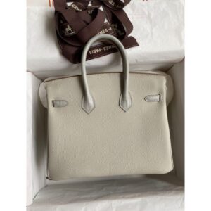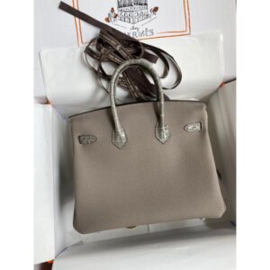 Hermes Touch Birkin 25 Bag in Pearl Grey Togo and Matte Alligator Leather