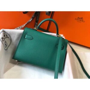 Hermes Kelly Mini II Bag In Green Embossed Crocodile Leather