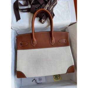 Hermes Birkin 30 Handmade Bag In Toile & Chai Epsom Leather