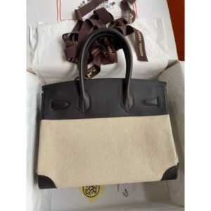 Hermes Birkin 30 Handmade Bag in Toile & Ebene Swift Leather