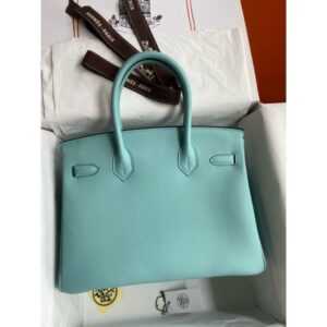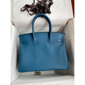 Hermes Birkin 30 Retourne Handmade Bag In Blue Atoll Clemence Leather