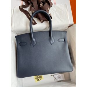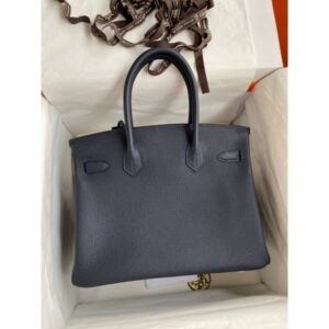 Hermes Birkin 30 Retourne Handmade Bag In Blue Nuit Clemence Leather