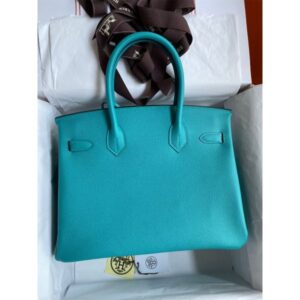 Hermes Birkin 30 Retourne Handmade Bag In Blue Atoll Epsom Calfskin