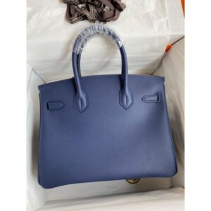 Hermes Birkin 30 Retourne Handmade Bag In Blue Paon Epsom Calfskin