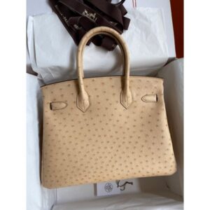 Hermes Birkin 30 Retourne Handmade Bag In Chai Ostrich Leather
