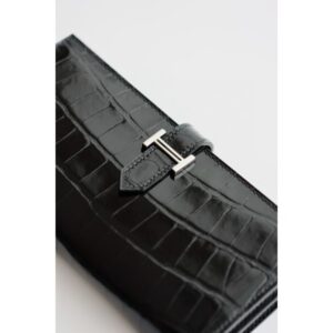 Hermes Bearn Compact Wallet in Graphite Shiny Alligator Leather
