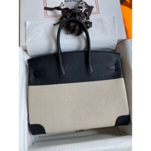 Hermes Birkin 35 Handmade Bag In Toile & Black Swift Leather