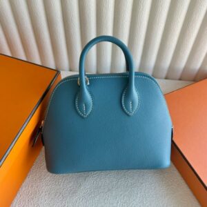 Hermes Bolide 1923 Mini Handmade Bag in Blue Glacier Evercolor Calfskin
