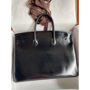 Hermes Birkin 40 Retourne Handmade Bag In Black Box Calfskin