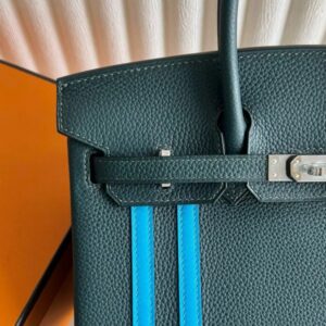 Hermes Birkin Officier 25 Handmade Bag in Vert Cypress Clemence Leather