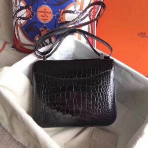 Hermes Constance 24 Handmade Bag In Black Niloticus Crocodile
