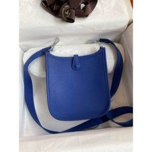 Hermes Evelyne Mini Handmade Bag in Blue Electric Clemence Leather