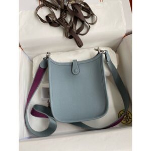 Hermes Evelyne Mini Handmade Bag in Blue Atoll Clemence Leather