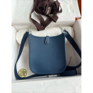 Hermes Evelyne Mini Handmade Bag in Blue Jean Clemence Leather