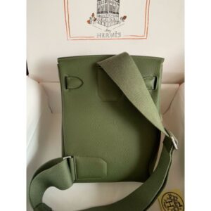 Hermes Herbag Zip 20 Bag in Green Canvas and Black Hunter Calfskin