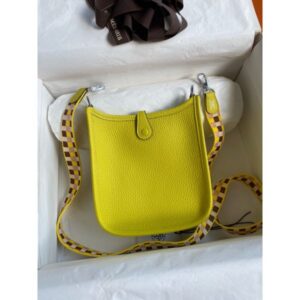 Hermes Evelyne Mini Handmade Bag in Jaune Poussin Clemence Leather