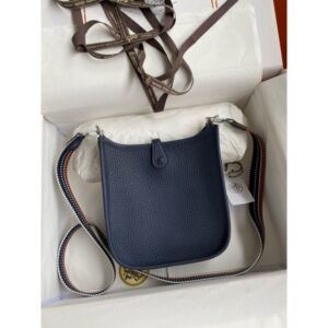 Hermes Evelyne Mini Handmade Bag in Deep Blue Clemence Leather