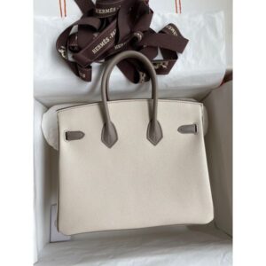 Hermes HSS Birkin 25 Bicolor Bag in Craie and Gris Asphalt Epsom Calfskin