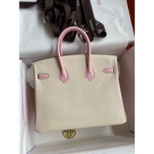 Hermes HSS Birkin 25 Bicolor Bag in Craie and Pink Chevre Mysore Leather