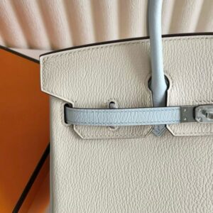 Hermes HSS Birkin 25 Bicolor Bag in Nata and Blue Brume Chevre Mysore Leather
