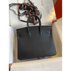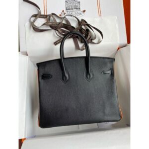 Hermes HSS Birkin 25 Bicolor Bag in Black and Orange Chevre Mysore Goatskin