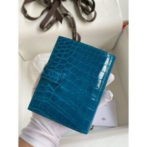 Hermes Bearn Compact Wallet in Blue Izmir Shiny Alligator Leather