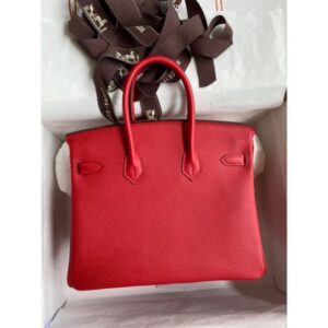 Hermes Birkin 25 Handmade Bag In Red Crocodile Porosus Shiny Skin