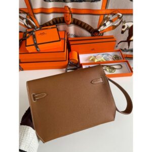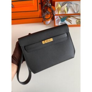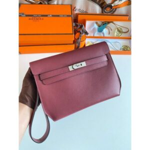 Hermes Kelly Depeches 25 Pouch in Vert Amande Epsom Calfskin