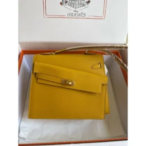 Hermes Kelly En Desordre 20 Handmade Bag in Jaune Ambre Epsom Calfskin