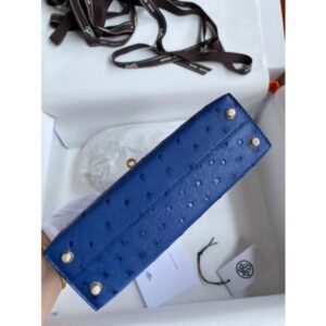 Hermes Kelly Mini II Handmade Bag In Blue Electric Ostrich Leather