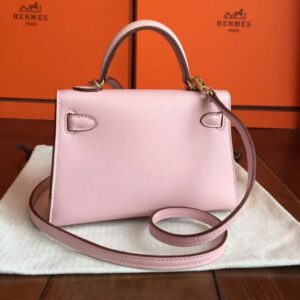 Hermes Kelly Mini II Handmade Bag In Rose Dragee Swift Calfskin