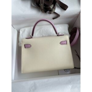 Hermes Kelly Mini II Sellier Bicolor Handmade Bag in Nata and Mauve Sylvestre Epsom Calfskin