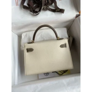 Hermes Kelly Mini II Sellier Bicolor Handmade Bag in Nata and Taupe Epsom Calfskin