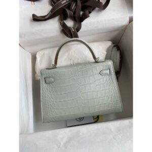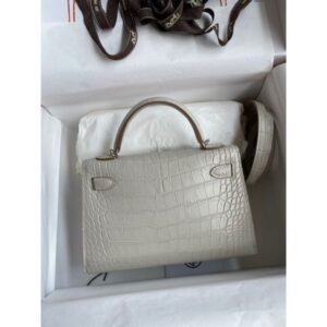 Hermes Kelly Mini II Sellier Handmade Bag In Gris Neve Matte Alligator Leather