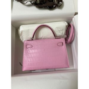 Hermes Kelly Mini II Sellier Handmade Bag In Mauve Pale Matte Alligator Leathe
