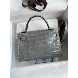 Hermes Kelly Mini II Sellier Handmade Bag in Gris Tourterelle Shiny Alligator Leather