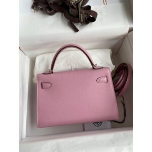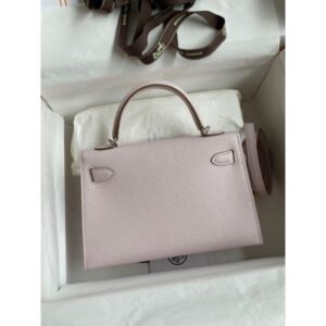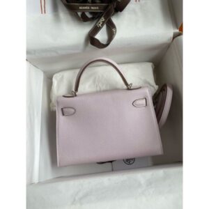 Hermes Kelly Mini II Sellier Handmade Bag In Mauve Pale Chevre Mysore Leather