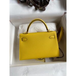 Hermes Kelly Mini II Sellier Handmade Bag In Jaune Bourgeon Chevre Mysore Leather