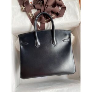 Hermes Birkin 25 Retourne Handmade Bag In Black Box Calfskin