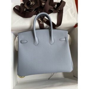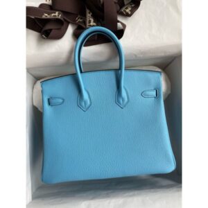 Hermes Birkin 25 Retourne Handmade Bag In Blue Glacier Clemence Leather