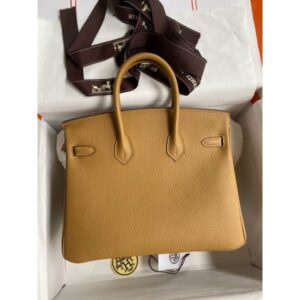 Hermes Birkin 25 Retourne Handmade Bag in Chai Clemence Leather