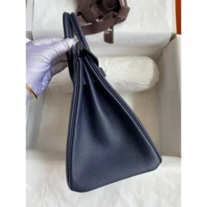 Hermes Birkin 25 Retourne Handmade Bag in Blue Nuit Clemence Leather